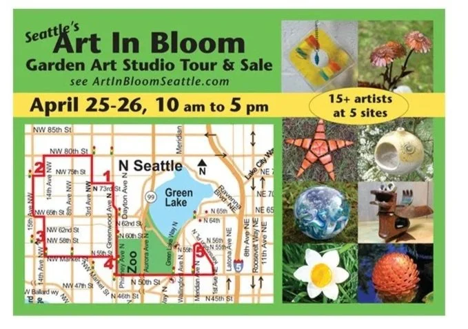 It’s spring! The Art in Bloom Studio Tour is this weekend, April 25 & 26.Art In Bloom, Seattle's free Garden Art Studio Tour and Sale is happening this weekend: April 25-26, 10am to 5pm. That's 2 weeks before Mother's Day. (details and printable map at ArtInBloomSeattle.com).